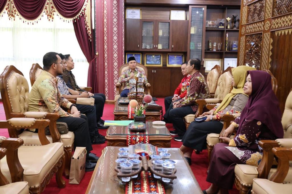 BERNUS.CO - Bupati Lampung Barat Parosil Mabsus bersama Wakil Bupati Mad Hasnurin menerima audiensi dari Kepala Cabang BPJS Ketenagakerjaan Lampung Tengah, Dwi Bhakti Indra Fitriawan, beserta rombongan di ruang kerja Bupati pada Kamis, 10 April 2025.
